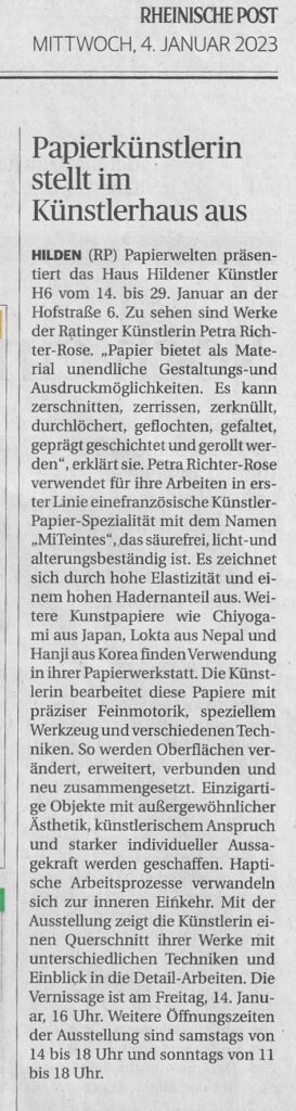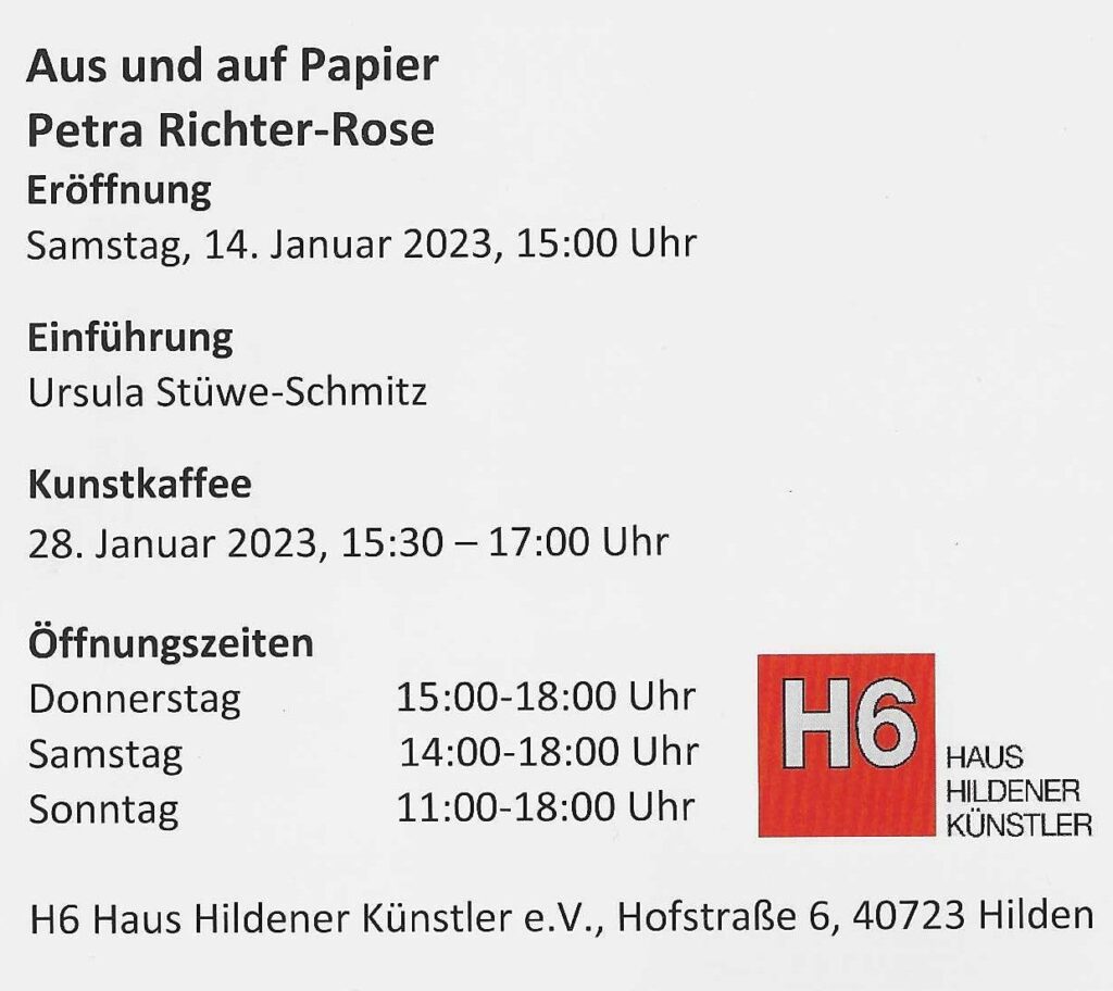 14.01.23 – 29.01.23 Ausstellung im Haus Hildener Künstler H6